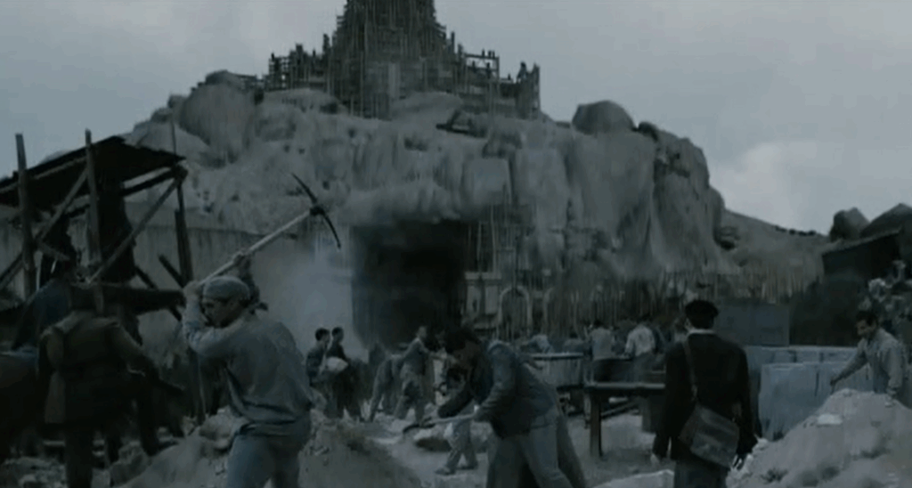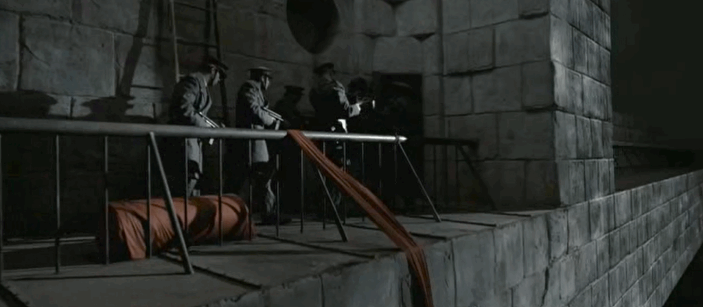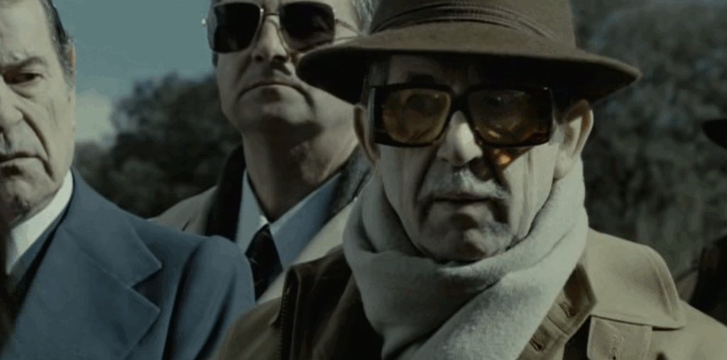 Alla costruzione della Valle de los Caidos, alla comparsata di Francisco Franco, ormai un vecchietto quasi bonario che rimprovera il suo colonello per il sadismo nei confronti del clown triste costretto ad agire come un cane da riporto. All’Operazione Ogro, l’attentato a Carrero Blanco. E il sontuoso e folle finale ambientato propria sulla croce di Los Caidos ricostruita in digitale.