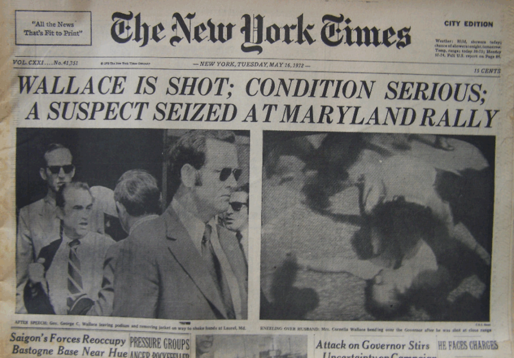 Martin Luther King [Jr.] fu assassinato nell’aprile del 1968 da un suprematista bianco; Bobby Kennedy nel giugno del 1968 da un killer palestinese, che però agiva in modo indipendente, non sotto il controllo del movimento terroristico palestinese internazionale; e nel maggio del 1972, George Wallace, il governatore segregazionista dell’Alabama, candidato alla presidenza, fu colpito e reso invalido da un killer che sembra essere stato una sorta di perdente in cerca di fama piuttosto che qualcuno con un programma politico.